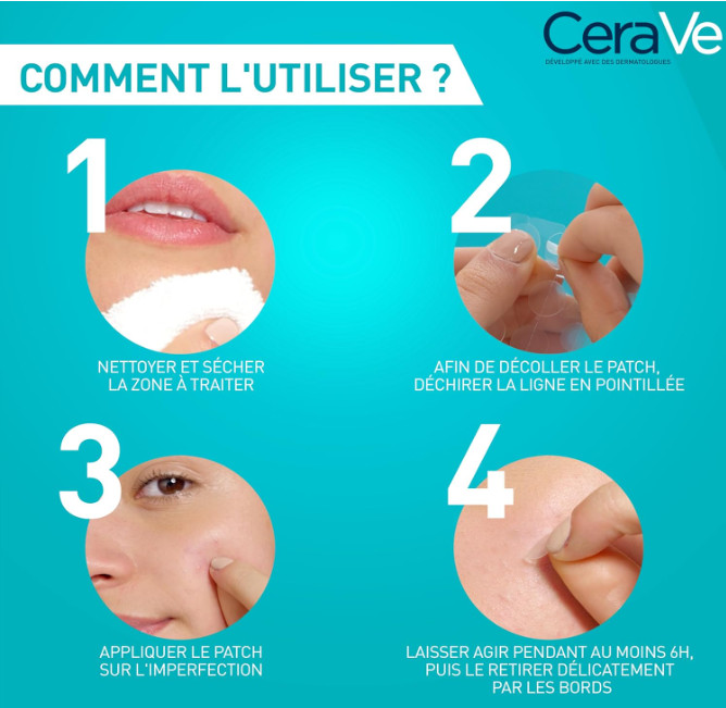 Les patchs anti?imperfections CeraVe sont des patchs hydrocolloïdes invisibles conçus pour réduire rapidement l’apparence des boutons et rougeurs grâce à leur technologie qui absorbe l’excès de sébum.