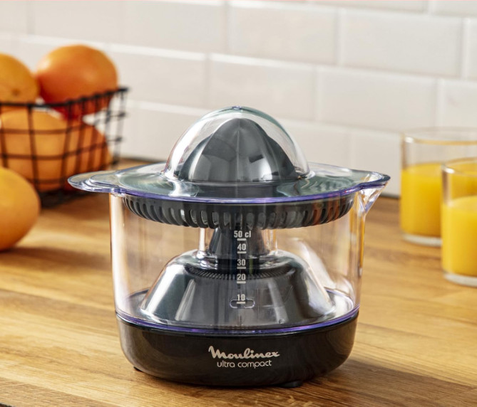 Moulinex Presse?agrumes Ultra Compact est un presse?agrumes électrique compact qui te permet de préparer facilement des jus d’agrumes frais à la maison.